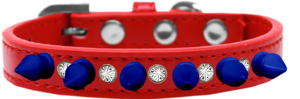 Crystal and Blue Spikes Dog Collar