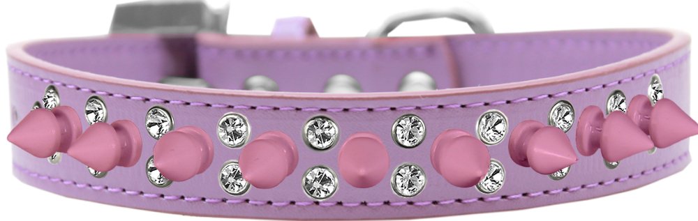 Double Crystal and Light Pink Spikes Dog Collar