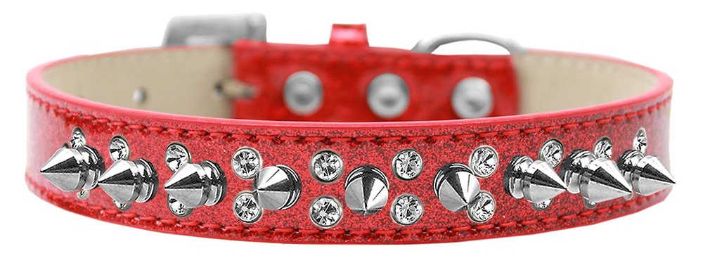 Double Crystal and Silver Spikes Dog Collar