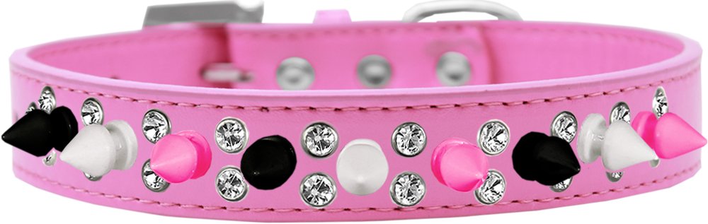 Double Crystal with Black, White and Bright Pink Spikes Dog Collar